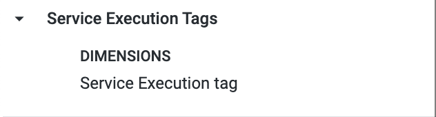 This view contains the data related to the service execution tags. It will contain the tags that were present in the service at the start of the execution.