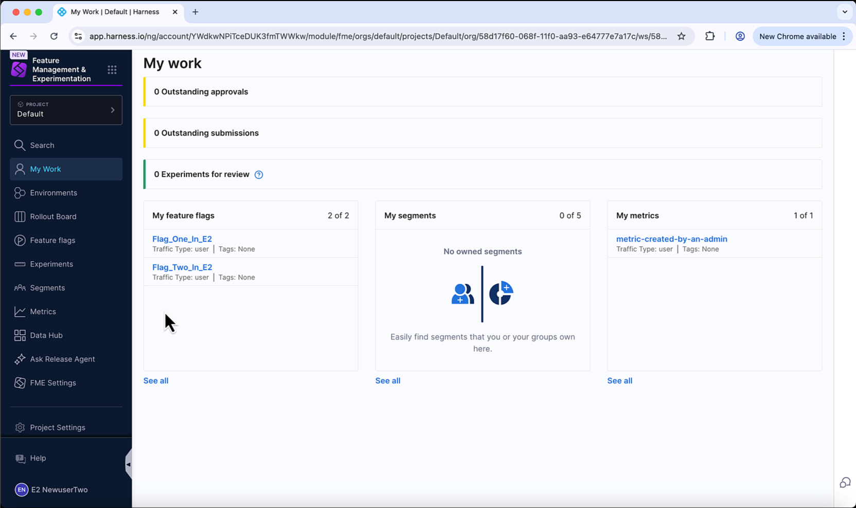 The first time you log into Feature Management & Experimentation (FME) on Harness you will see a screen like the one below.