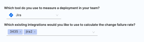 - Select the relevant Jira integrations that you wish to use for calculating change failure rate.