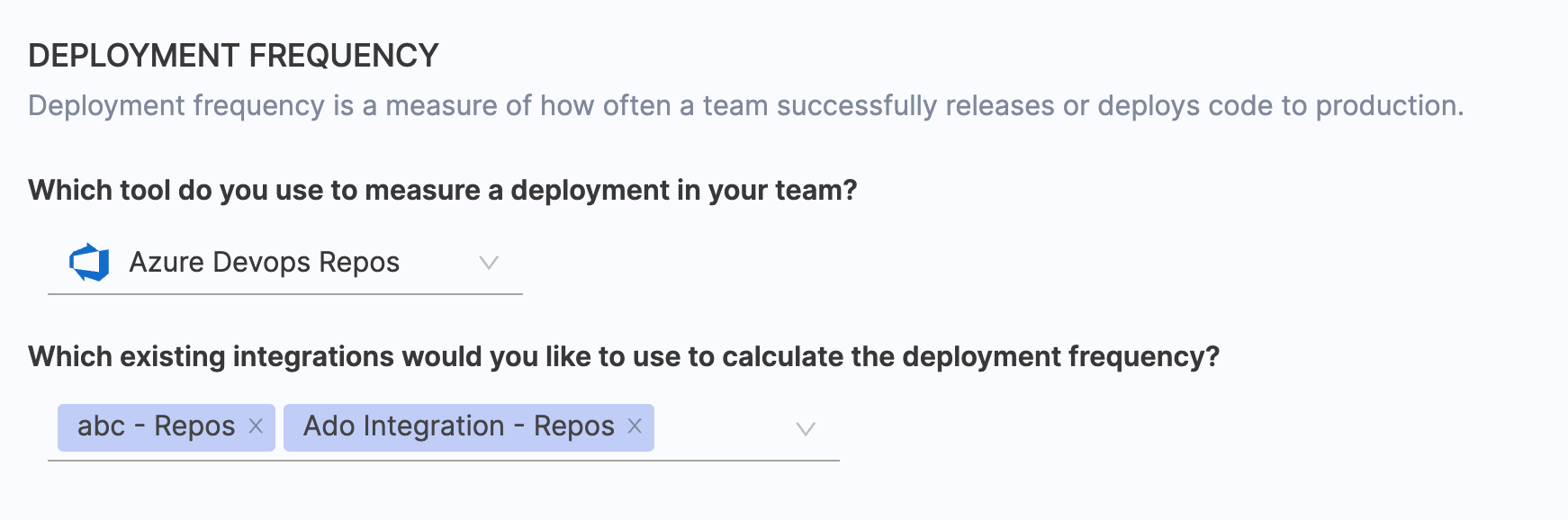 - Select the relevant Azure DevOps Pipelines integrations that you wish to use for calculating change failure rate.