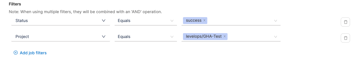 - Define additional attributes to identify deployments causing failure and total deployments. When using multiple filters, they will be combined with an 'AND' operation.