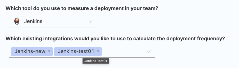 - Select the relevant Jenkins integrations that you wish to use for calculating change failure rate.