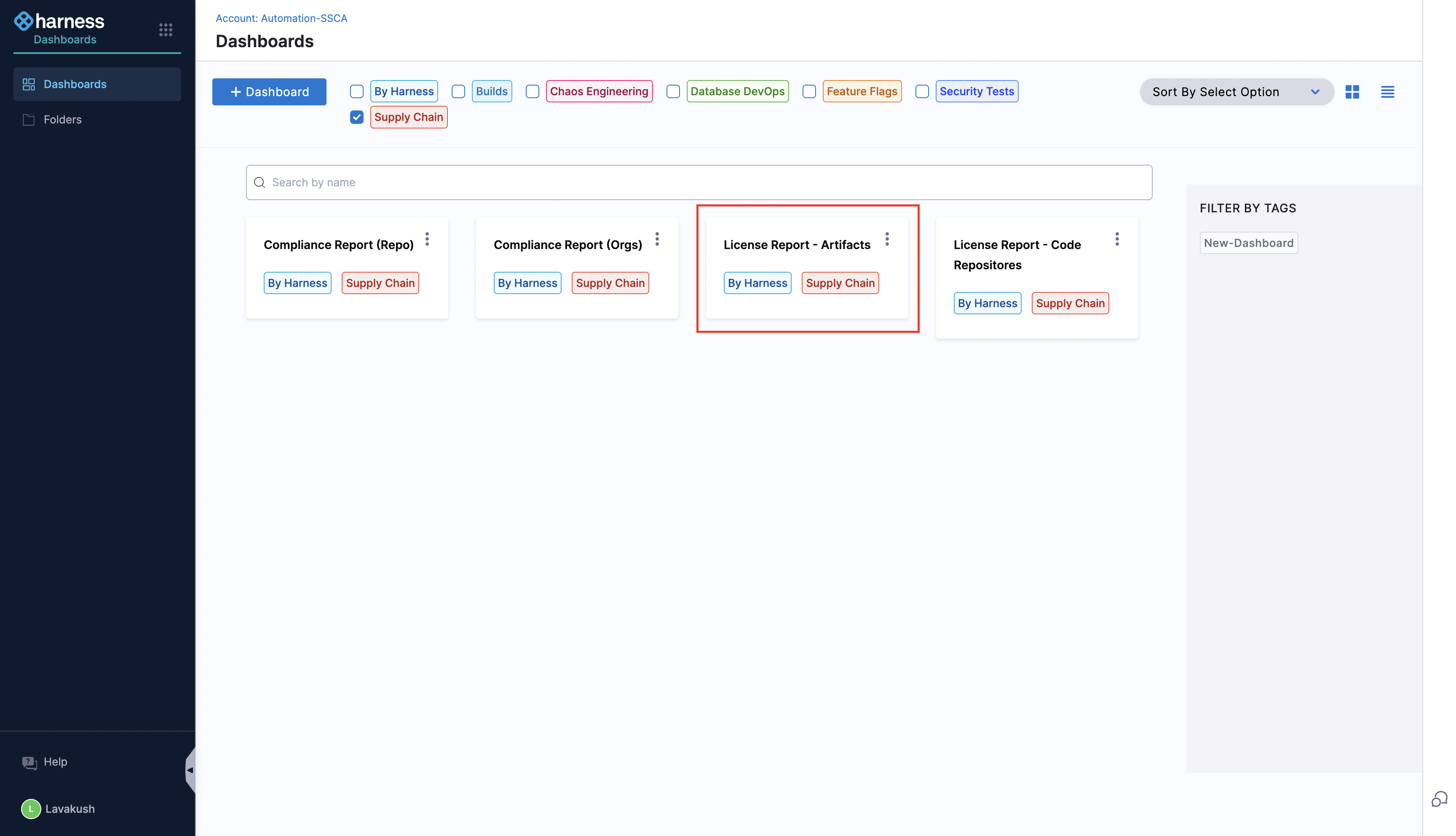 With Harness License Reports Dashboards, you can easily access detailed information about the licenses and license families associated with your artifacts or code repositories and all the relevant data in one place, which eliminates the need to manually check each component’s license individually across all the projects.