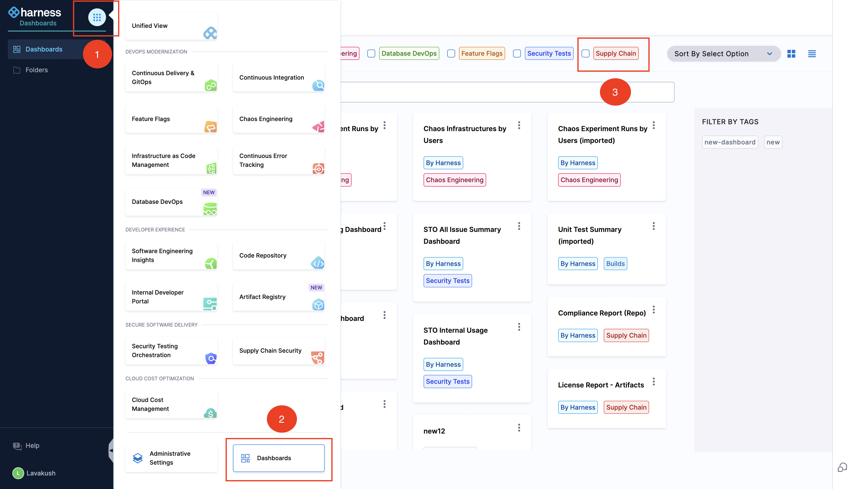 - Click on the Grid in the top-left menu, Select Dashboards, and then choose Supply Chain.